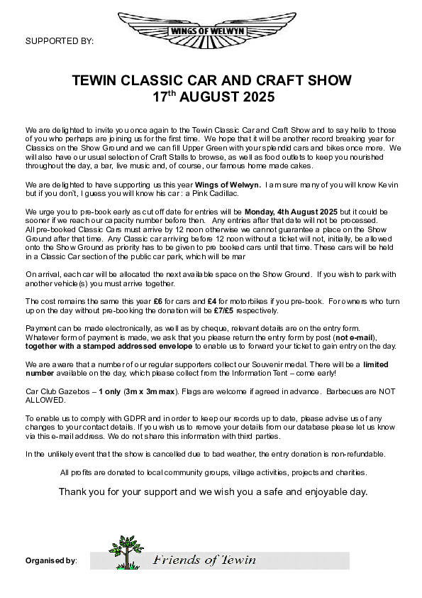 TEWIN CLASSIC CAR & CRAFT SHOW - 18th AUGUST 2024